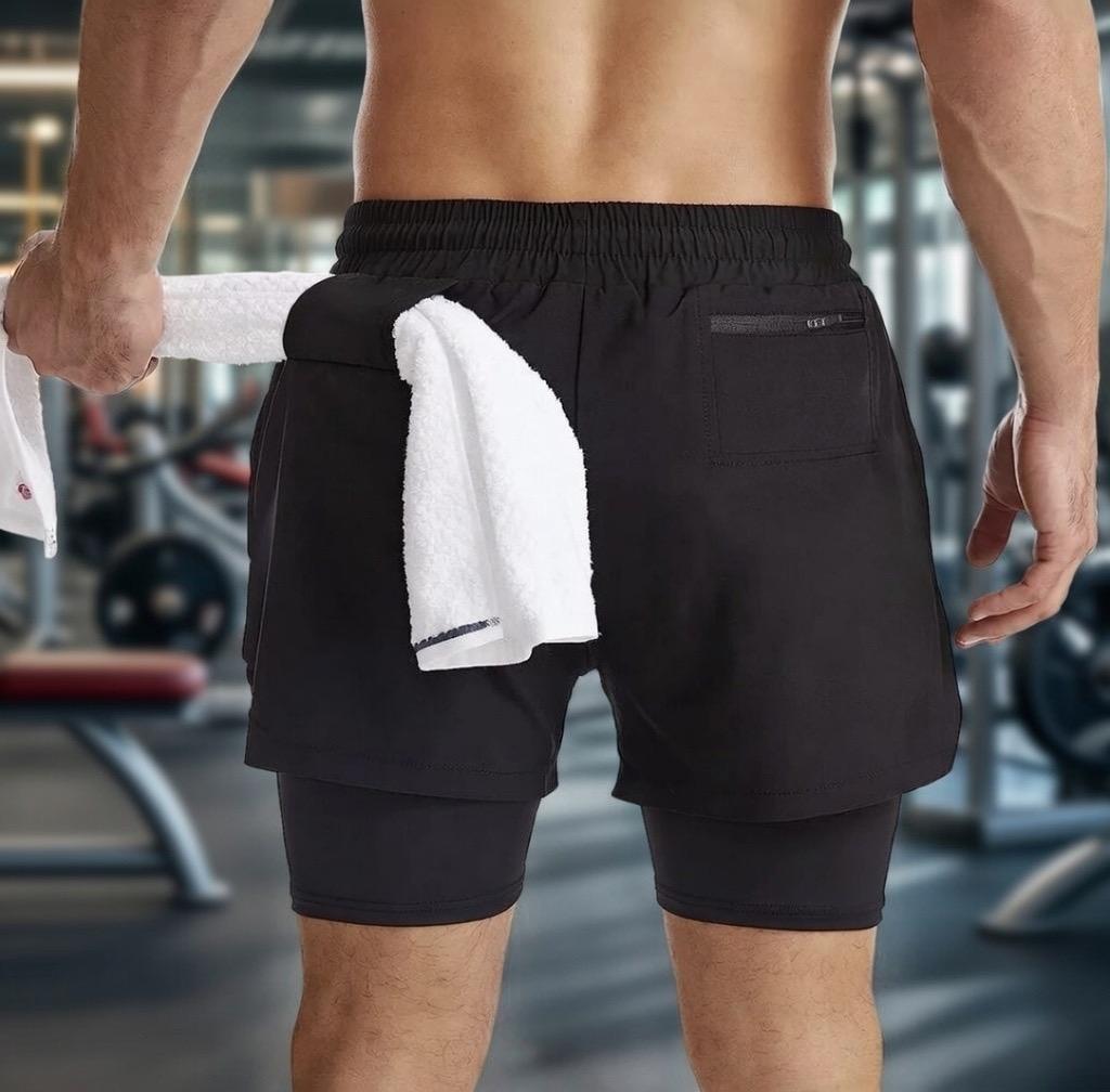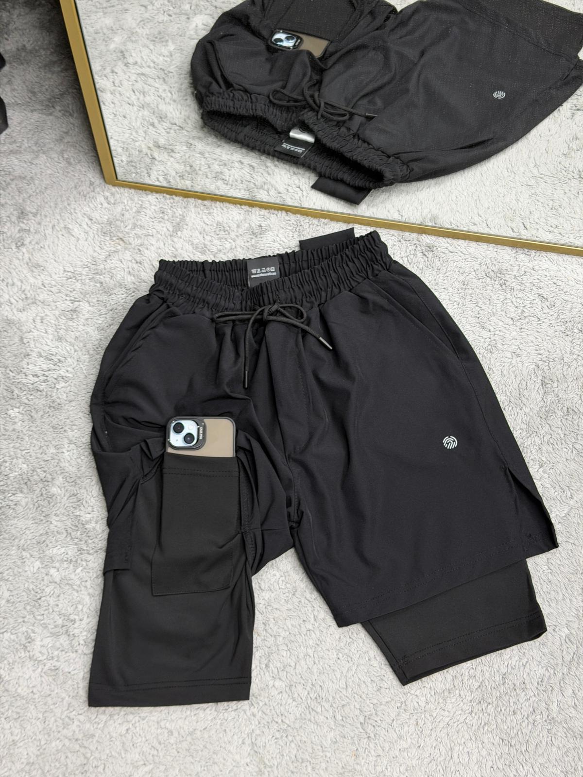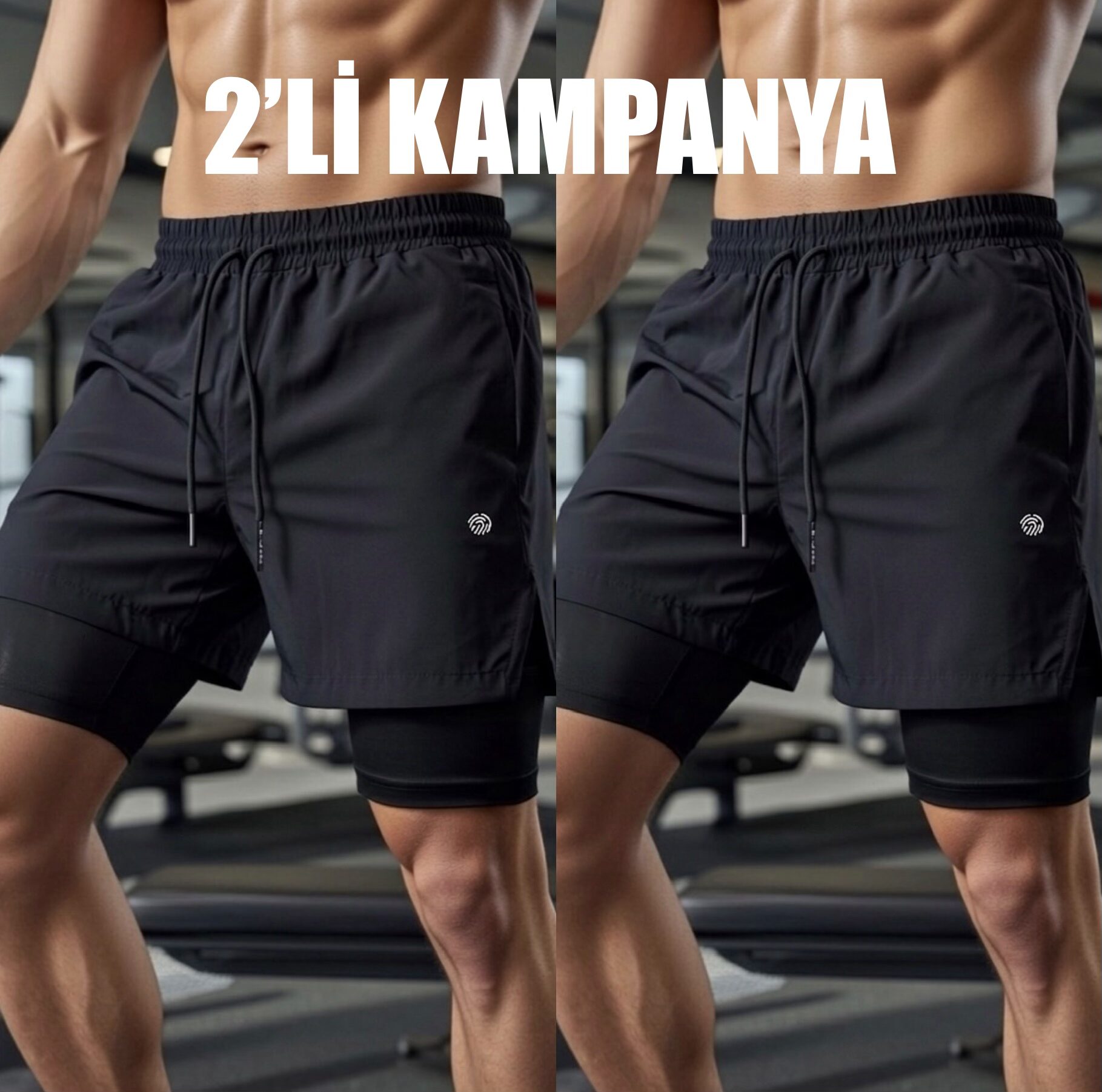 2 In 1 Şort telefon cep’li havluluk Gym Ve Fitness Astarlı Taytlı Şort