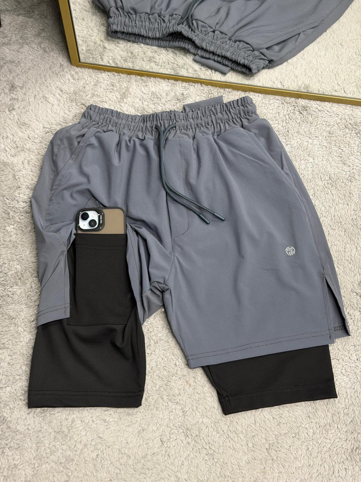 2 In 1 Şort telefon cep'li havluluk Gym Ve Fitness Astarlı Taytlı Şort